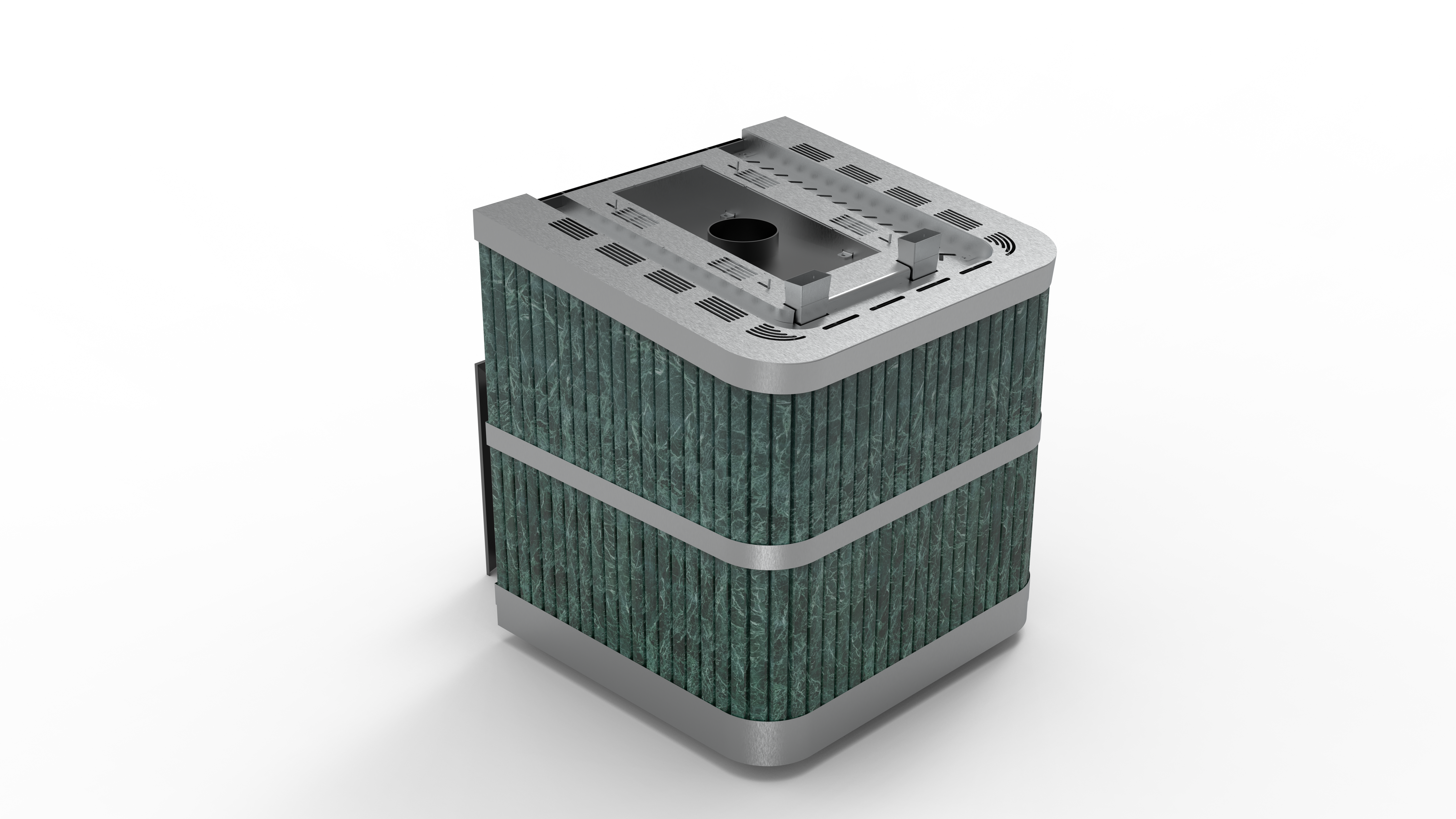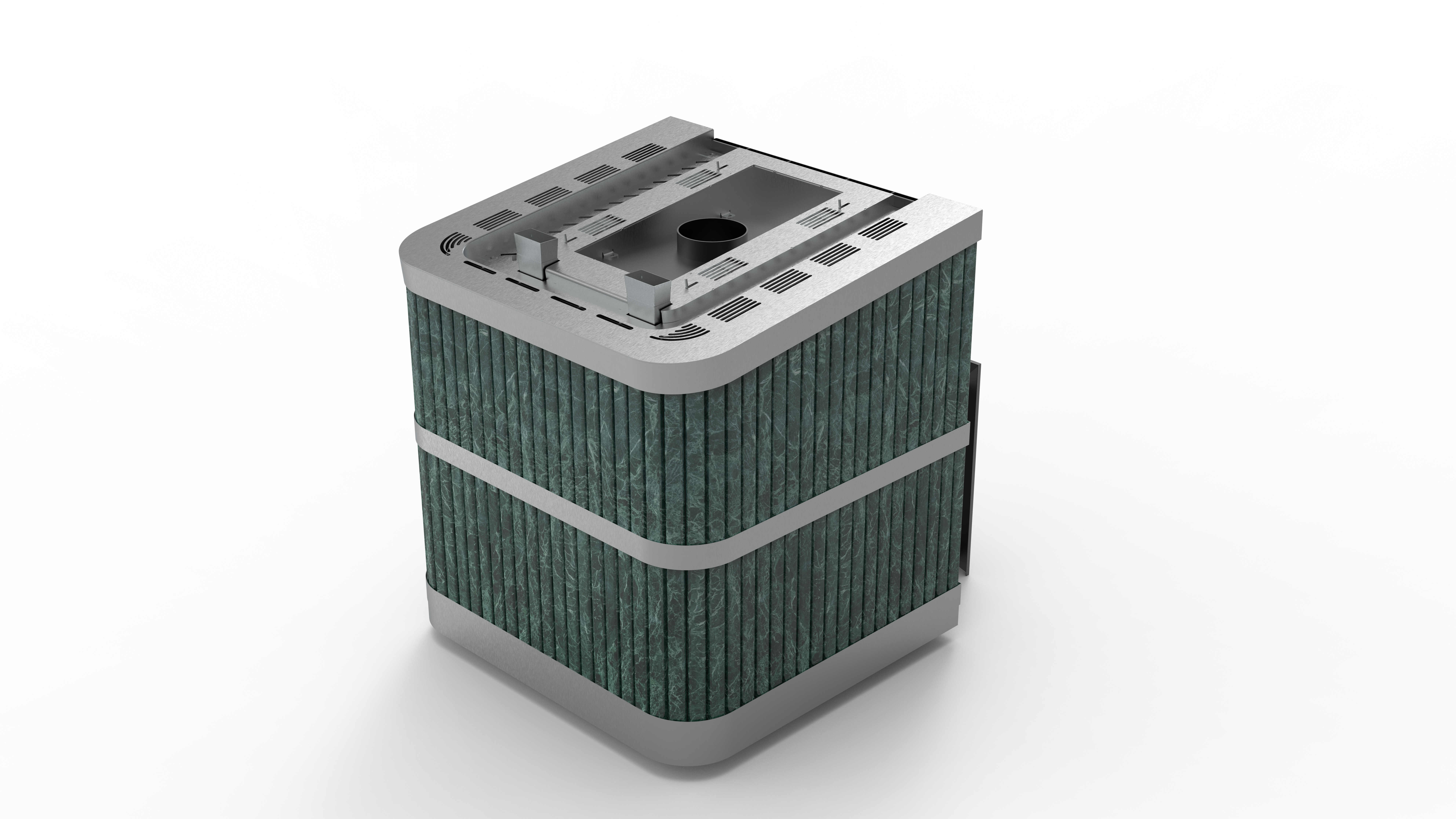 Банная печь с закрытой каменкой и облицовкой из натурального камня пероксенит (по запросу возможен выбор других видов камня) предназначена для интенсивной коммерческой эксплуатации в корпоративных парных, общественных и городских банях, а также в банных комплексах и SPA‑зонах.
