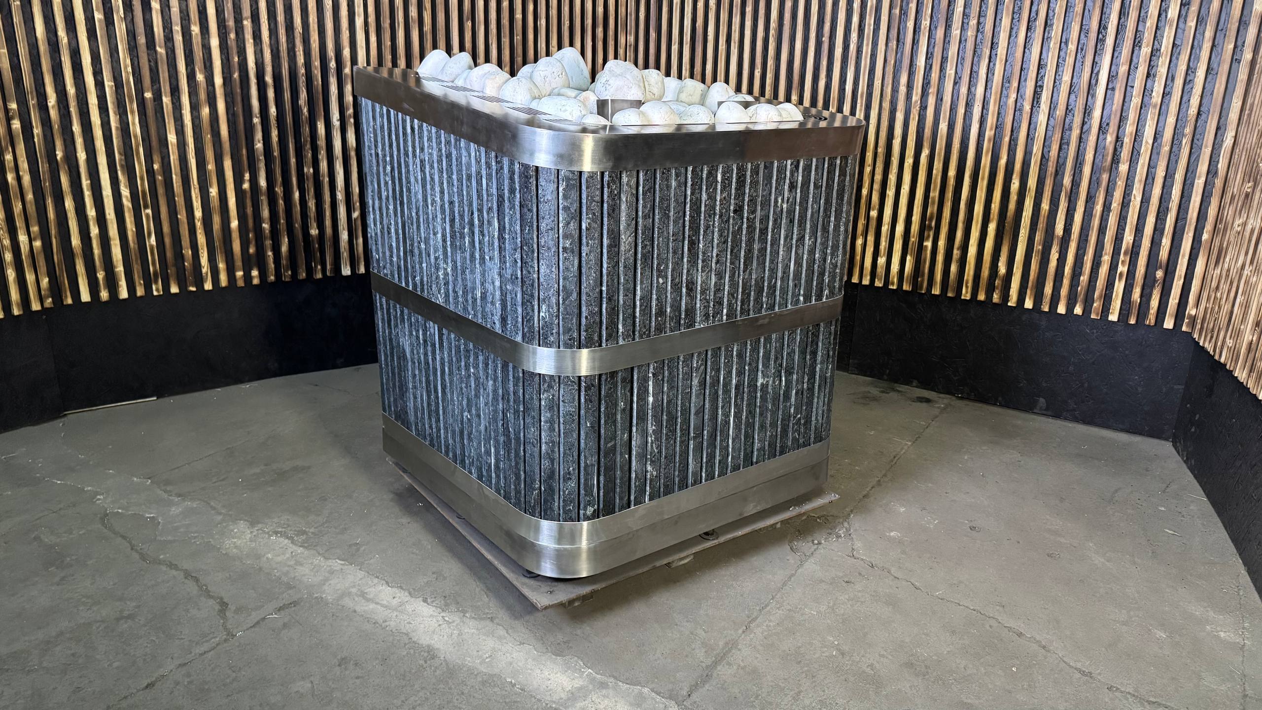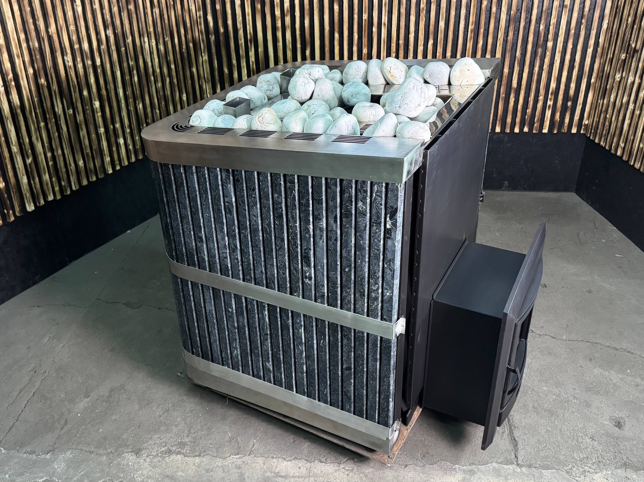 Коммерческая банная печь с закрытой каменкой и облицовкой из натурального камня для парных объёмом до 50 м³. Подходит для общественных и городских бань, банных комплексов и SPA с режимом работы 6–7 дней в неделю.