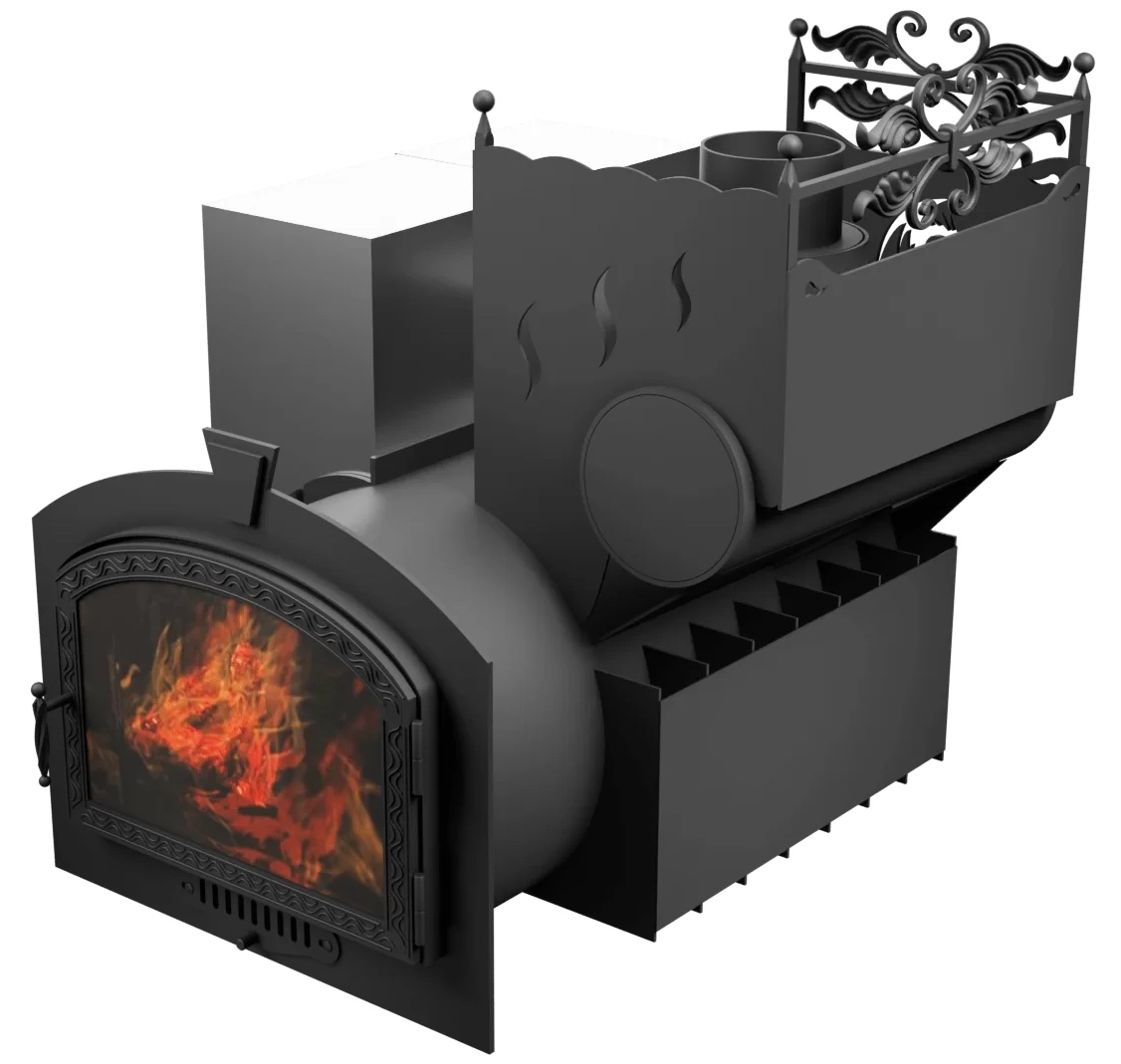 Печь Горыныч 3, каменка закрытая с парогенератором с левой стороны, большая дверь со стеклом