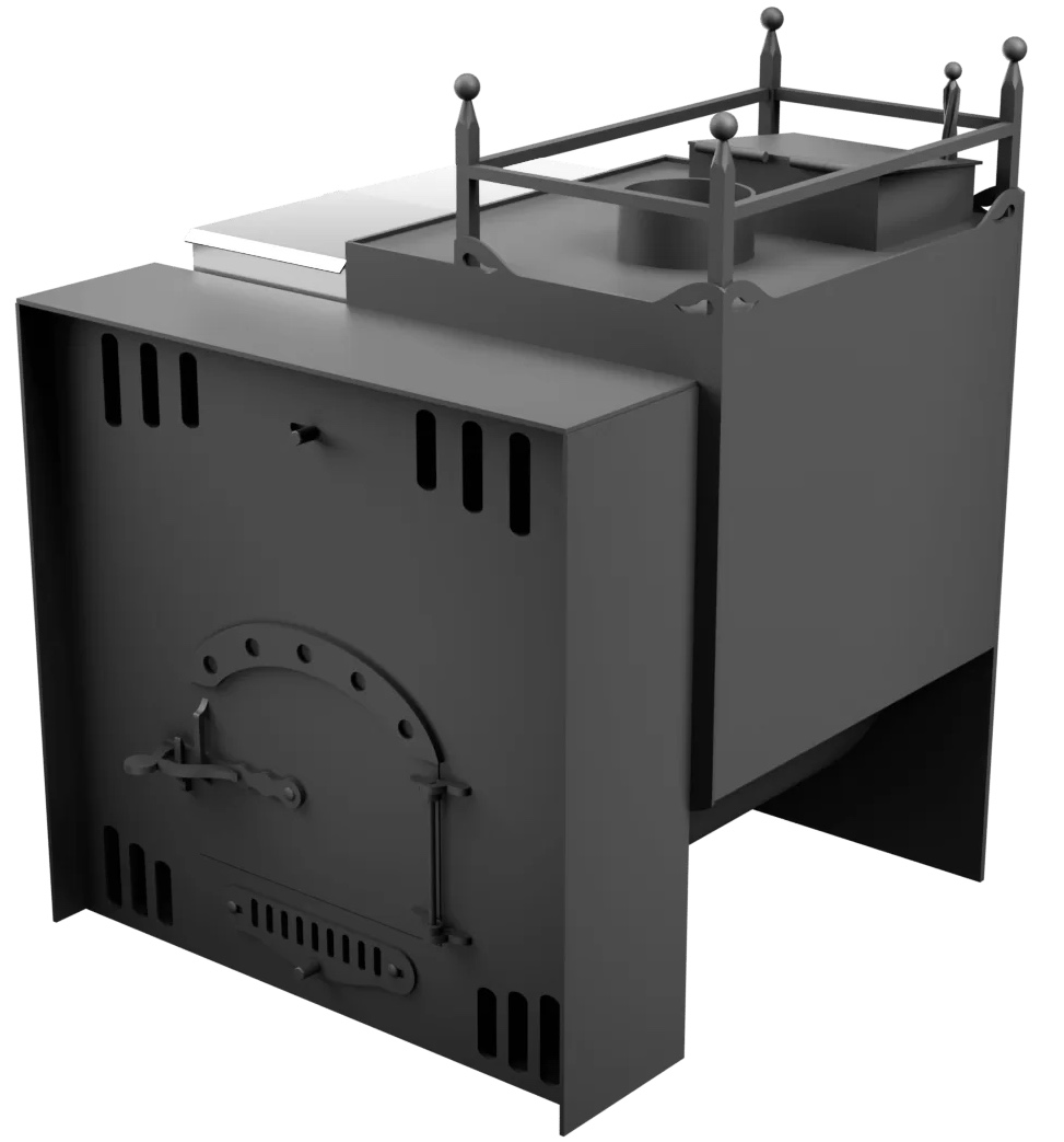 Печь Горыныч 3, каменка закрытая с парогенератором с правой стороны, большая дверь со стеклом
