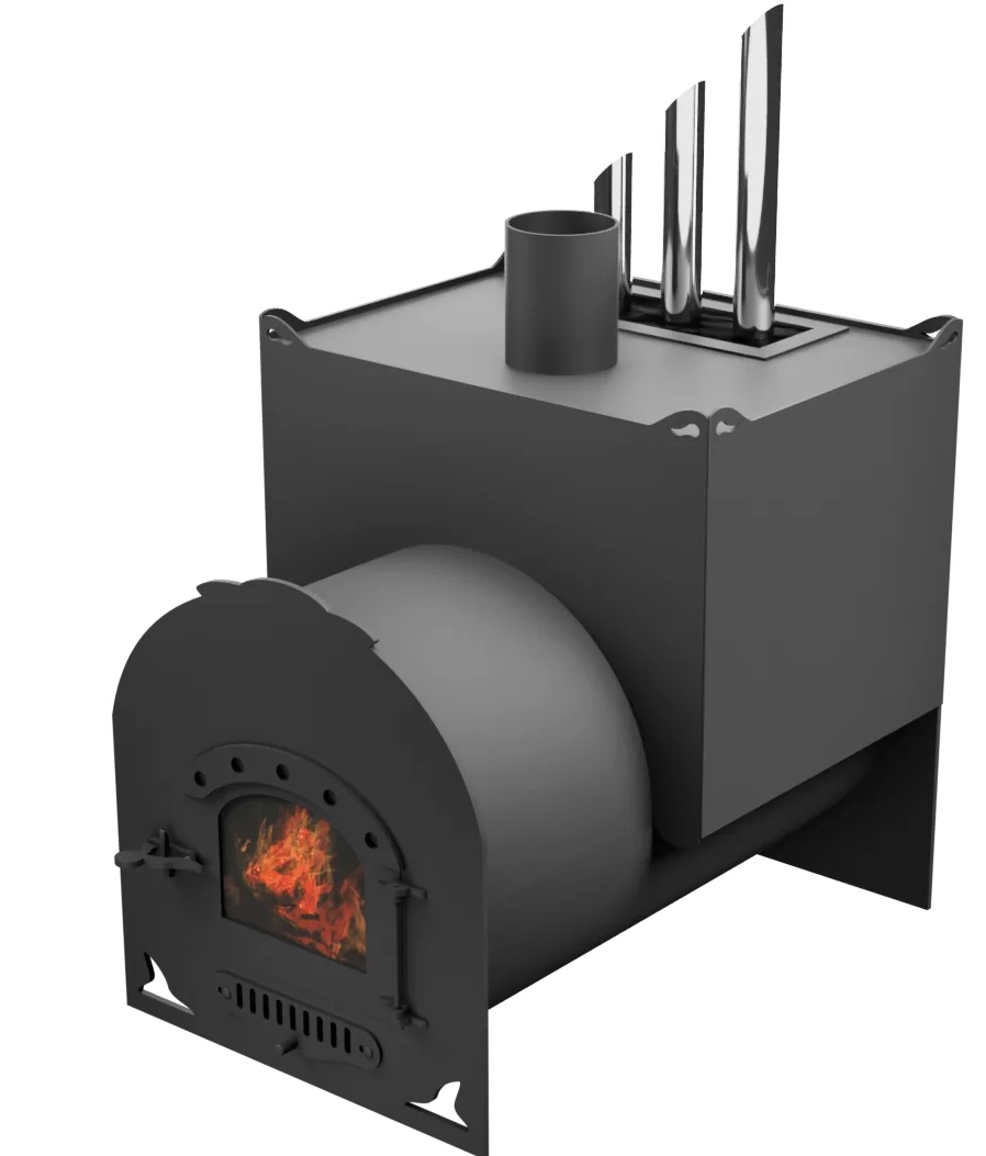 Печь Горыныч 3, каменка закрытая с парогенератором с левой стороны, большая дверь со стеклом
